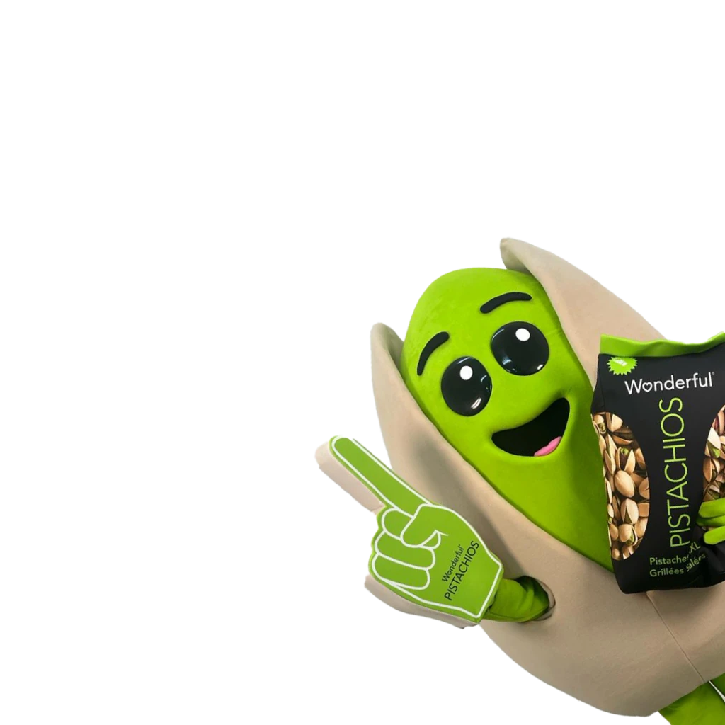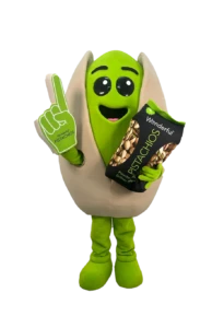 La mascotte pistache WONDERFUL PISTACHIO incarne la joie et l’esprit festif. Elle représente la bonne ambiance lors des fêtes ou soirées. Elle sera présente lors des évènements festifs pour représenter WONDERFUL PISTACHIO.