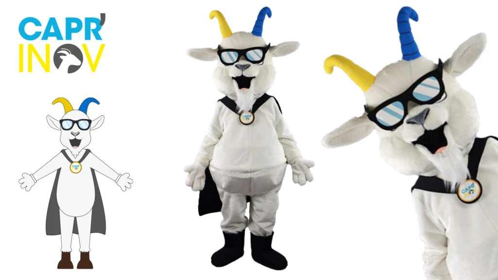 Figure distinctive de Carpr’ Inov, la chèvre incarne agilité, curiosité et innovation, reflétant l’esprit inventif de l’entreprise tout en invitant petits et grands à découvrir un univers original et dynamique.